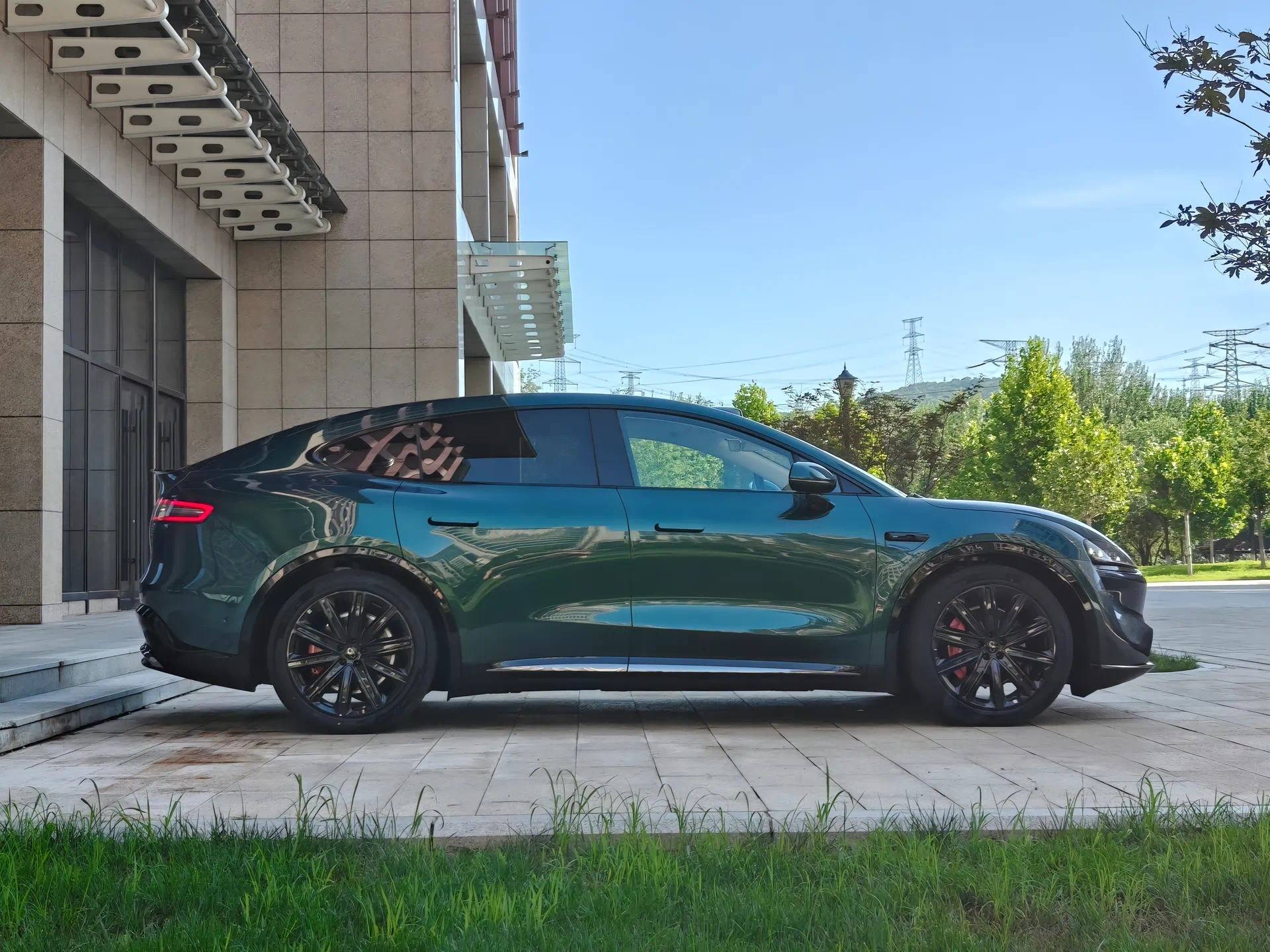 车身侧面与尾部变化不大,饱满的溜背式造型配合上扬的肩线以及碟式后扰流板,营造出蓄势待发的姿态。主要新增了“极光绿”配色,还可以选装黑曜套件,针对车窗饰条、侧裙以及尾标等细节进行熏黑处理,再配合20/21英寸黑曜多幅式轮毂+红色刹车卡钳,进一步提升性能感。另外包括无框电吸门、隐藏式门把手、贯穿式尾灯等时尚元素也均没有缺席,并新增脚踢感应电动尾门。